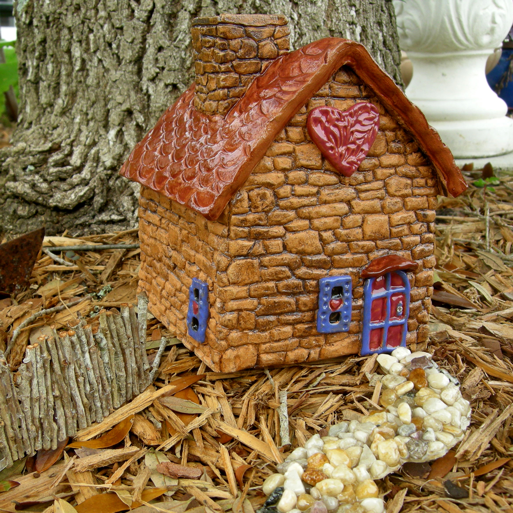 Often you will see on Pinterest, and other inspirational sites, fairy houses that are made from wood, found objects from nature or even pre-built bird houses. They are so beautiful. In Florida, however, the salty, moist air can turn these little gems into mush in a few short years. The houses I create are made from sturdy stoneware clay. The same type of clay that is used in bake ware. It is very weather resistant, although I have not tested it in harsh winter conditions and I always recommend that one bring the houses in during freezing winter months. In Florida, and other warm climates, we can keep the houses outdoors all year long.