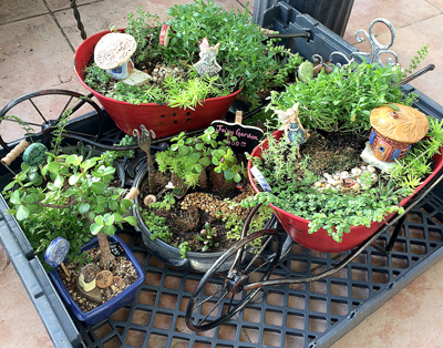 Setting aside a few miniature fairy gardens to take to our upcoming craft show this weekend.