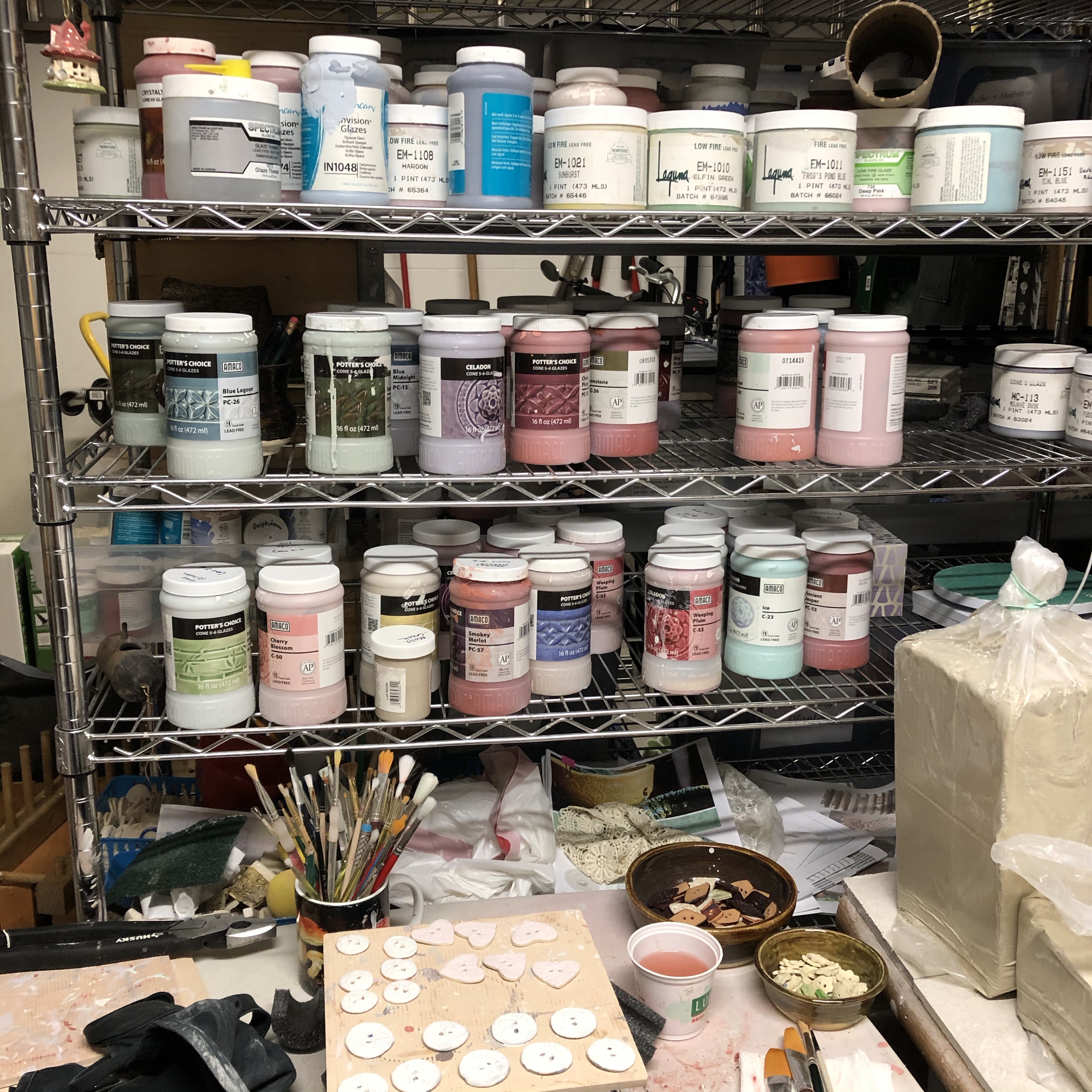 Over the years I have collected many helpful things to do my creating. I have tons of amazing cookie cutters, some my late brother-in-law made for me, wooden templates, patterns, and plaster molds. I have a lot of glazes which I LOVE.