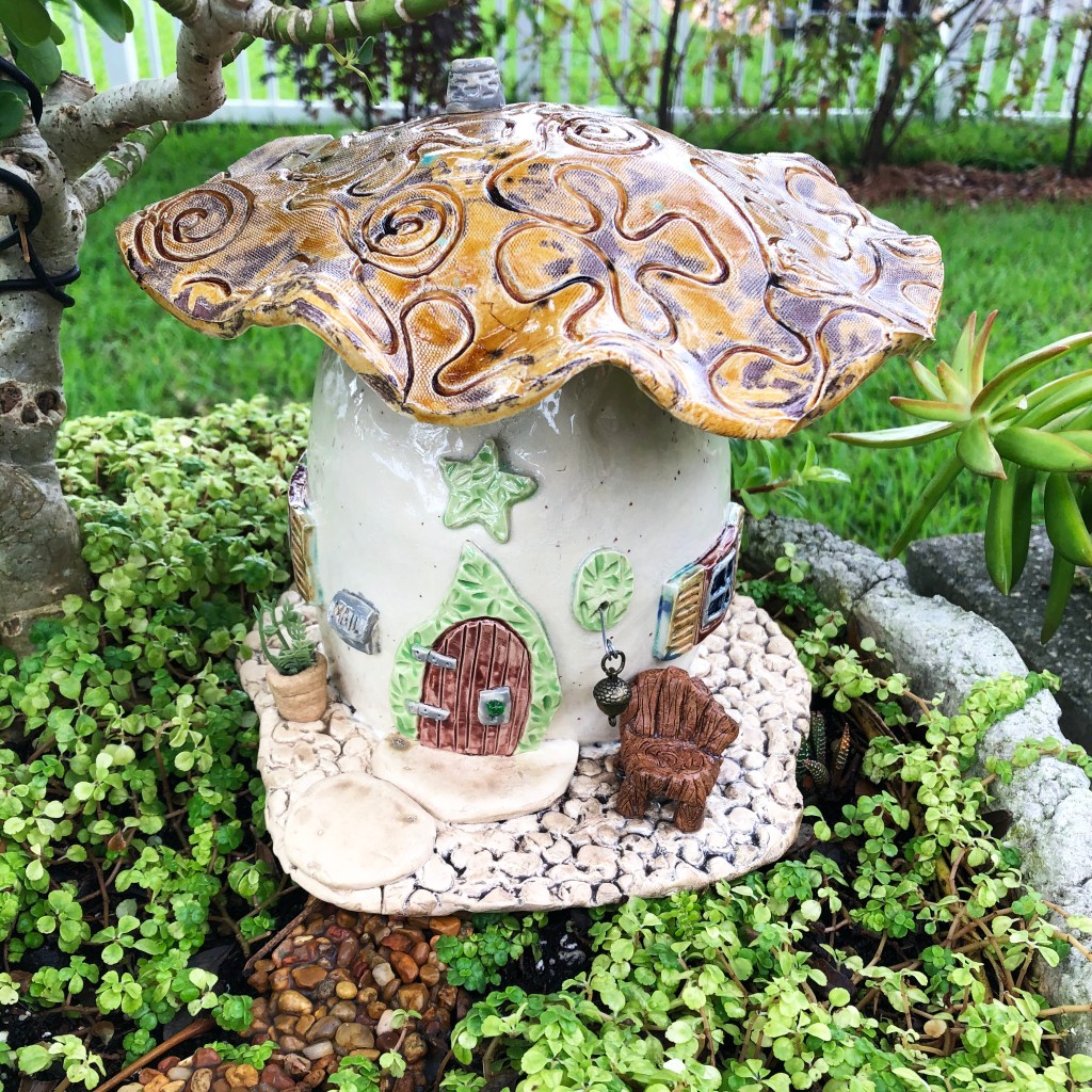 Build an entire outdoor (or indoor) fairy garden, with houses, signs, bird baths, wishing wells, bridges, mail boxes, bee skeps, accent mushrooms, and more! Each piece is hand-crafted from stoneware clay and high-fired for durability. They are sturdy enough for outdoor display (bring inside when temps begin to freeze). I use stainless steel wire and beads, which will withstand the elements as well.