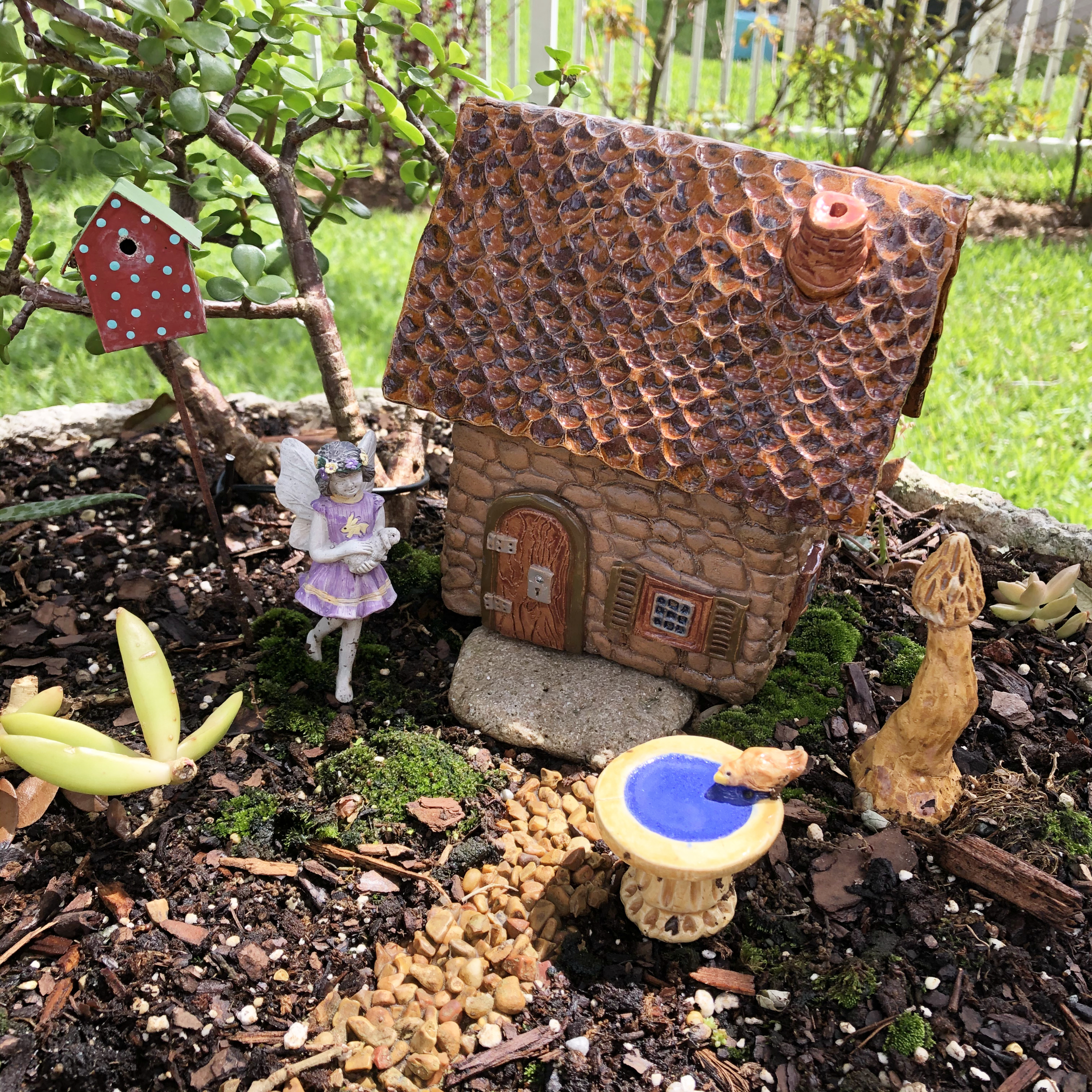 Please visit my Etsy shop to see some of the fairy garden houses and accessories I have for you to enjoy. Each piece is handmade. They are created from sturdy stoneware clay, so they won’t fade or be damaged by sun or rain. Many people collect my work, as each piece is hand-crafted and unique. Make a cute container garden, or an entire village for indoors or out.