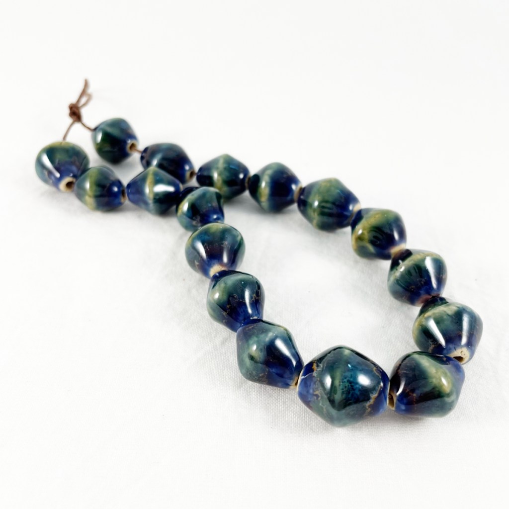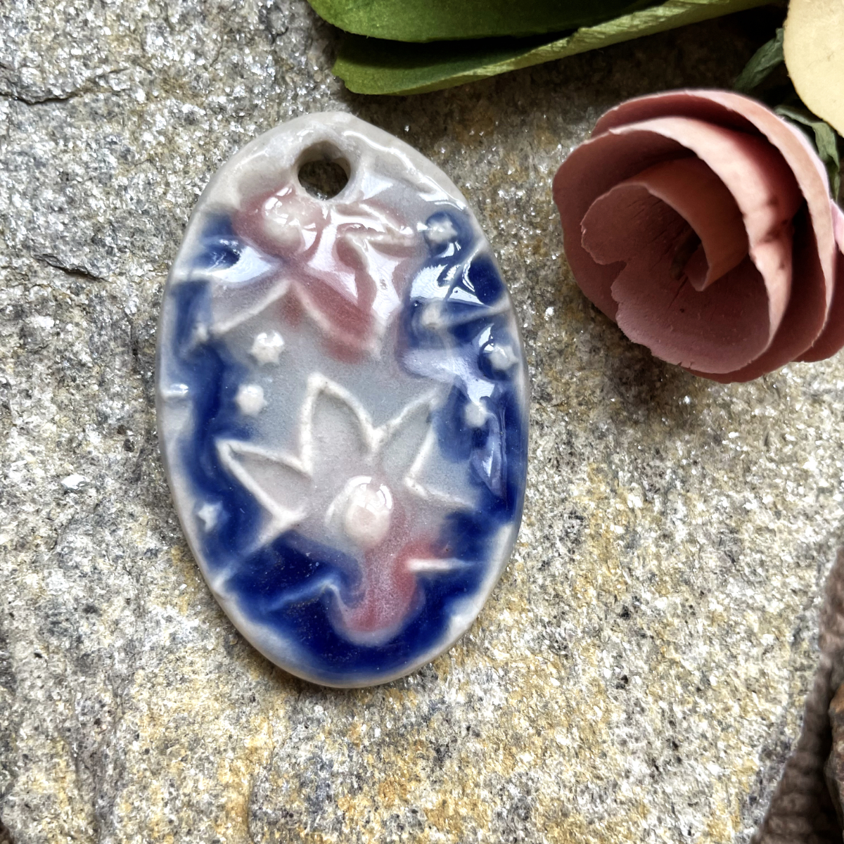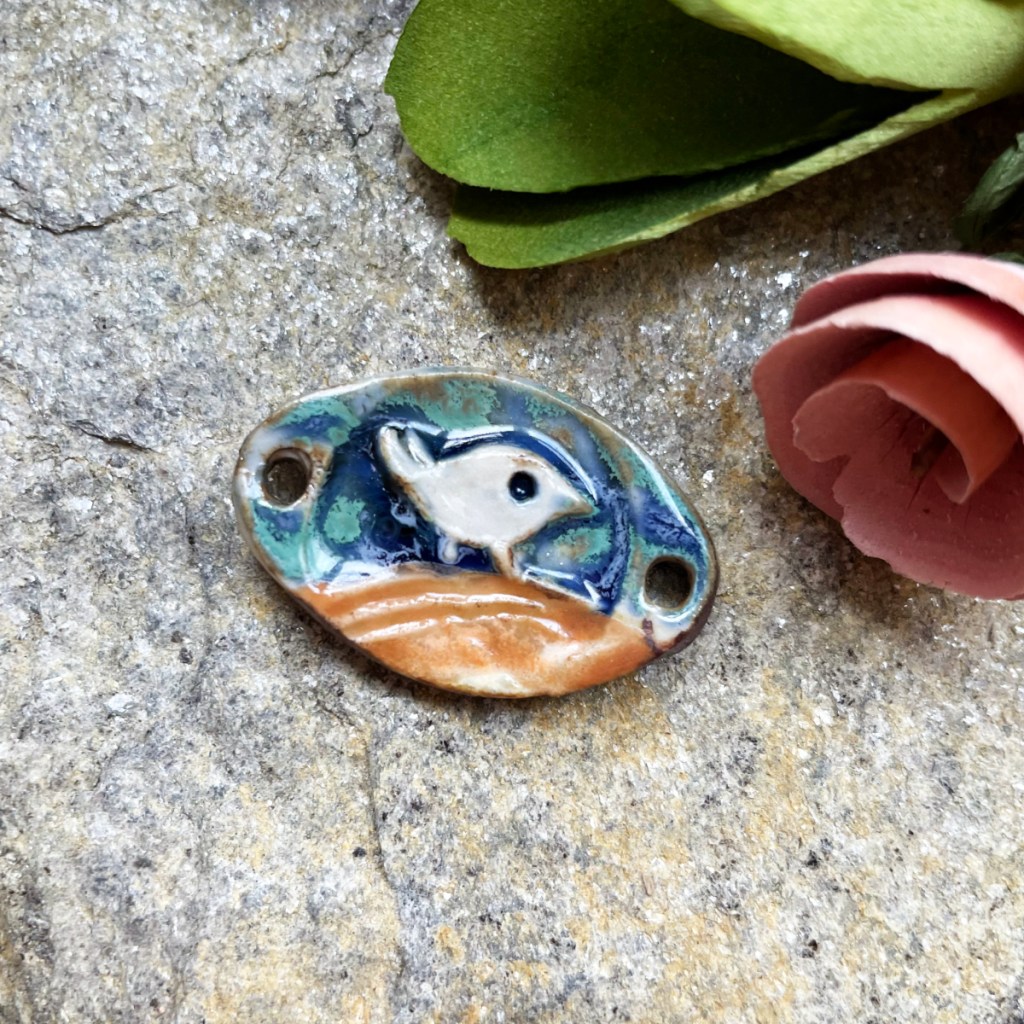 I use Amaco Potter’s Choice glazes for their translucency and shine. Each bead is hand-crafted from stoneware or porcelain clay, often using clay stamps that I carve by hand. Then bisque fire to cone 04 (2000°F), hand-paint on glaze, then fire again to cone 5 (2230°F). The result is a very sturdy, unique collection of beads, pendants, charms, and bracelet connector bars. You won’t find these in any store, and each batch I create is unique in shape, texture, size, and color (glaze combinations).