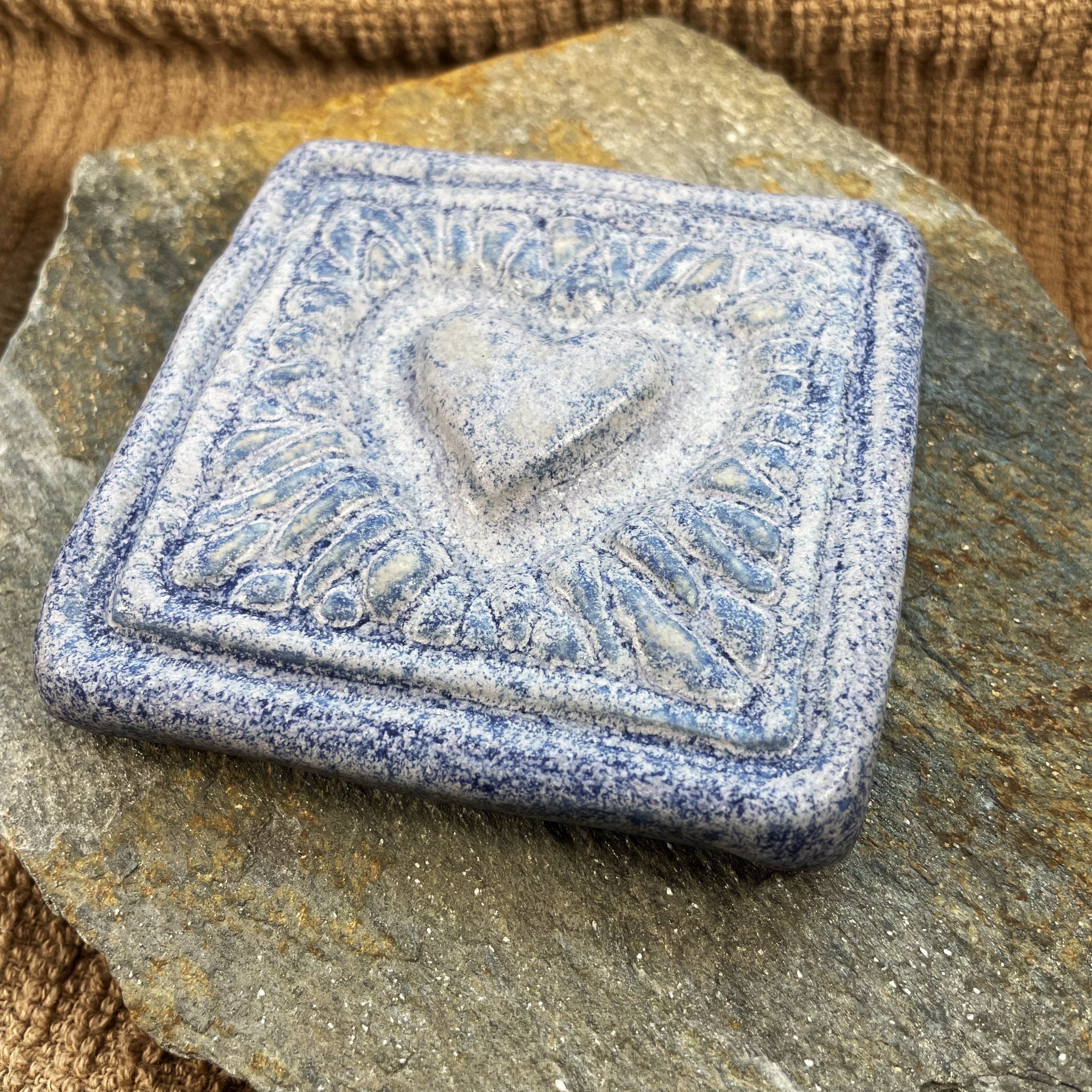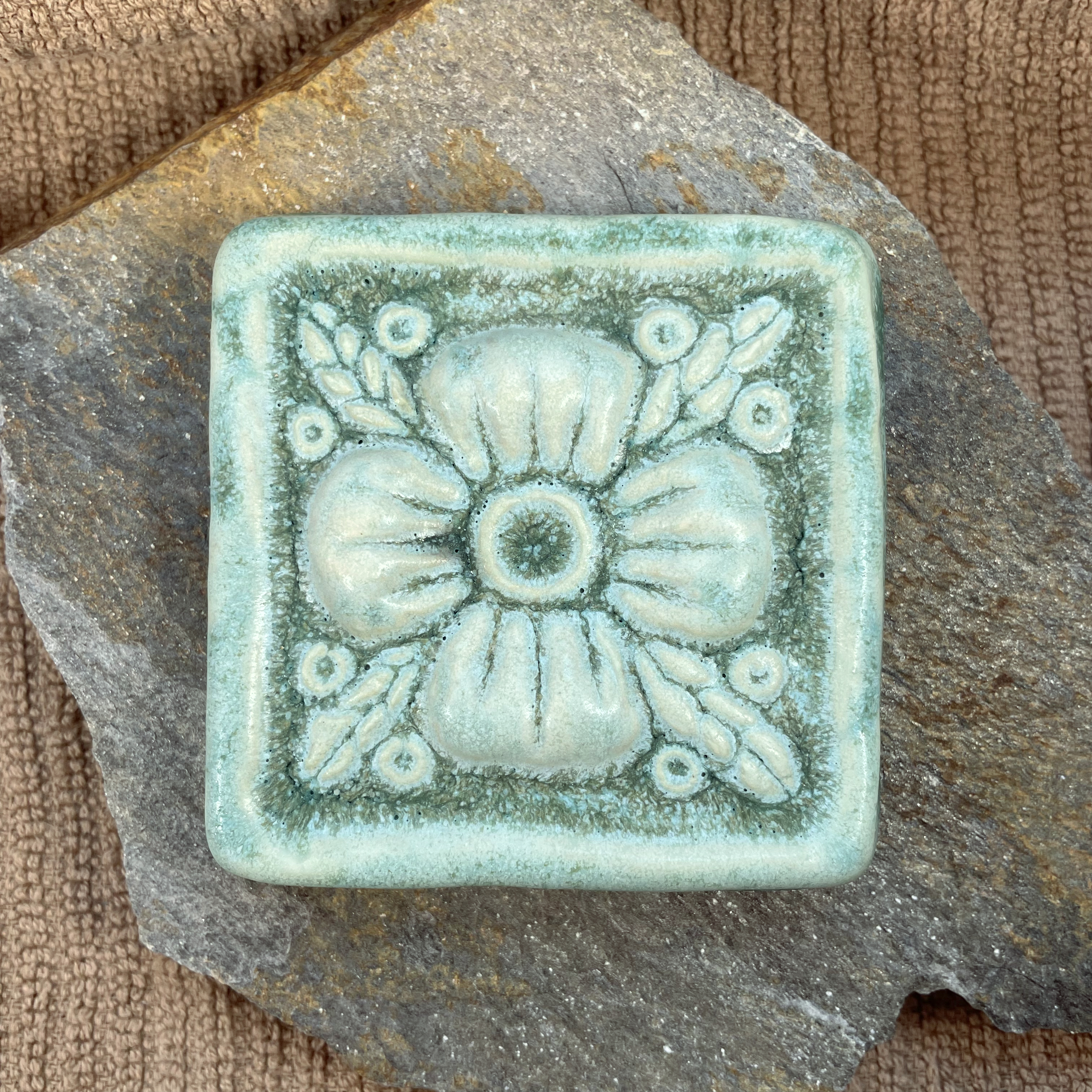 I continue to work on new designs and I love playing with new glaze combinations. Each tile is my own design. I create a master tile, then I make a plaster mold. Even though the finished tiles are pulled from my mold, each is unique in that I tweak them before firing them in the kiln.