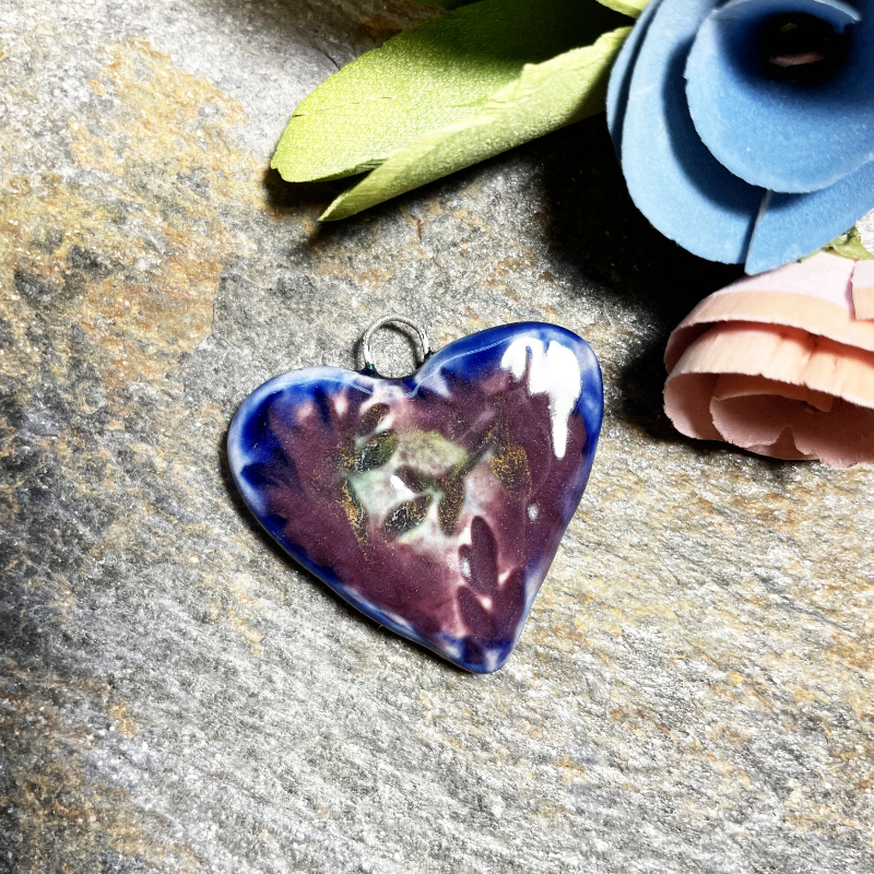 I have quite a large inventory of pendants in my shop, and I am adding even more this year. The glazes I use are great for layers of various colors, melting and blending in the high-fire kiln temperatures. I primarily use stoneware or porcelain clay bodies, so the drops are actually very sturdy. This blue and purple pendant can be found here on my Etsy Shop Pendants Section. Be sure to click on specific section tabs to see all of the other items like bead sets, charms, bracelet bars, and connector beads. Since I use a consistent line of glazes most of the items will match something in other categories.