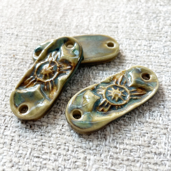 For jewelry designers who craft for boutiques and art shows, these pieces will make your creations absolutely unique! All of my pieces are hand-crafted in my small studio. You won’t find these anywhere else. I create my own stamps for unique textures and designs, then create each bead by hand. The groups of beads or pendants I make are limited editions. I use beautiful white stoneware clay and fire to a high fire with richly colored glazes. If you are looking for that special artisan look in your finished jewelry designs, look no further! Lovely new pieces are coming out of the kiln each month. I have a large variety of handcrafted beads, pendants, charms, bracelet connectors, and many other items in my Etsy shop.